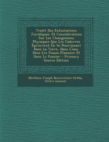 Le Titre Du Livre : Traite Des Exhumations Juridiques: Et Considerations Sur Les Changemens Physiques Que Les Cadavres E